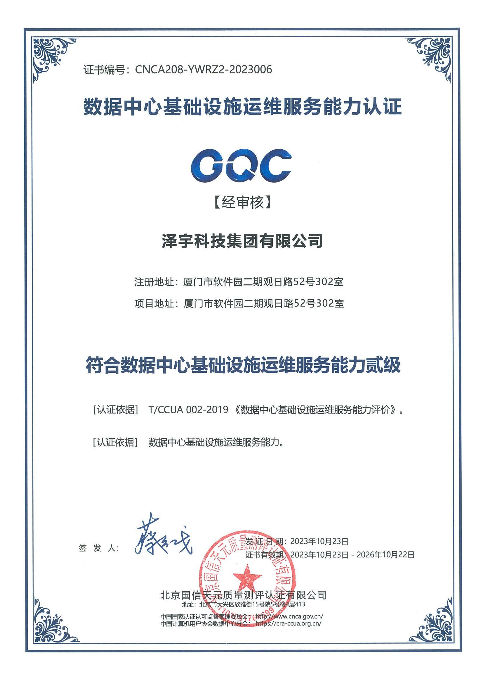 ABOUT US關于我們ABOUT US關于我們澤宇科技集團是一家集物聯網應用、系統集成、軟件開發及運維服務于一體的綜合性、科技型、專業技術服務型企業,同時也是廈門市首家專業從事數據中心建設的企業。 經過二十五年來的實踐和積累,擁有一支集設計咨詢、應用開發、項目實施管理和運維服務的高水平團隊,并取得相關行業、主管部門的認可和認證。 公司深耕數據中心建設及運維近三十年,通過技術積累、不斷創新,擁有兩個發明專利、二十余項實用新型及六十余項軟件著作權。 旗下子公司: 晟科信息技術有限公司 中聯偉業(廈門)科技有限公司 晟科教育裝備(惠安)有限公司 尚校云信息技術泉州有限公司 公司通過對“物聯網管理系統及方法”的專利技術的深度應用,研發了物聯網感知平臺(IOT平臺)及數據中臺,實現數據管理和應用孿生,完成對前端控制設備進行數據清洗及控制反推。 公司通過對“數據中心降溫方法”的專利技術,在數據中心節能方面進行應用和創新,形成了數據中心節能核心技術,取得了綠色數據中心建維5A級認證,并且我們也是綠色數據中心建維體系認證的參編單位。 以上2個核心專利技術的應用,主要在數據中心的安全、節能和便捷管理方向上,同時,我司也對2項專利技術應用方向,進行了深度融合,廣泛應用到智慧園區、智慧工廠、智慧醫療、智慧建筑、智慧農業、智慧校園等業務管理場景。 | NEWS新聞資訊NEWS新聞資訊